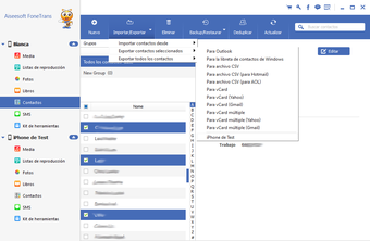 Además de permitir la transferencia de archivos del PC al dispositivo iOS, Aiseesoft FoneTrans permite exportar archivos de iPhone, iPad y iPod al PC o iTunes, e incluso a otro dispositivo iOS. Esta función es particularmente útil para desocupar espacio en la memoria del dispositivo al transferir archivos al PC o iTunes, o para crear archivos de copia de seguridad para garantizar la seguridad de todos los archivos e incluso de los datos de las aplicaciones.