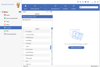 Además, permite administrar fácilmente contactos y mensajes, detectando duplicados, permitiendo la eliminación de varios contactos y mensajes a la vez, y exportando al PC para guardar como copia de seguridad.